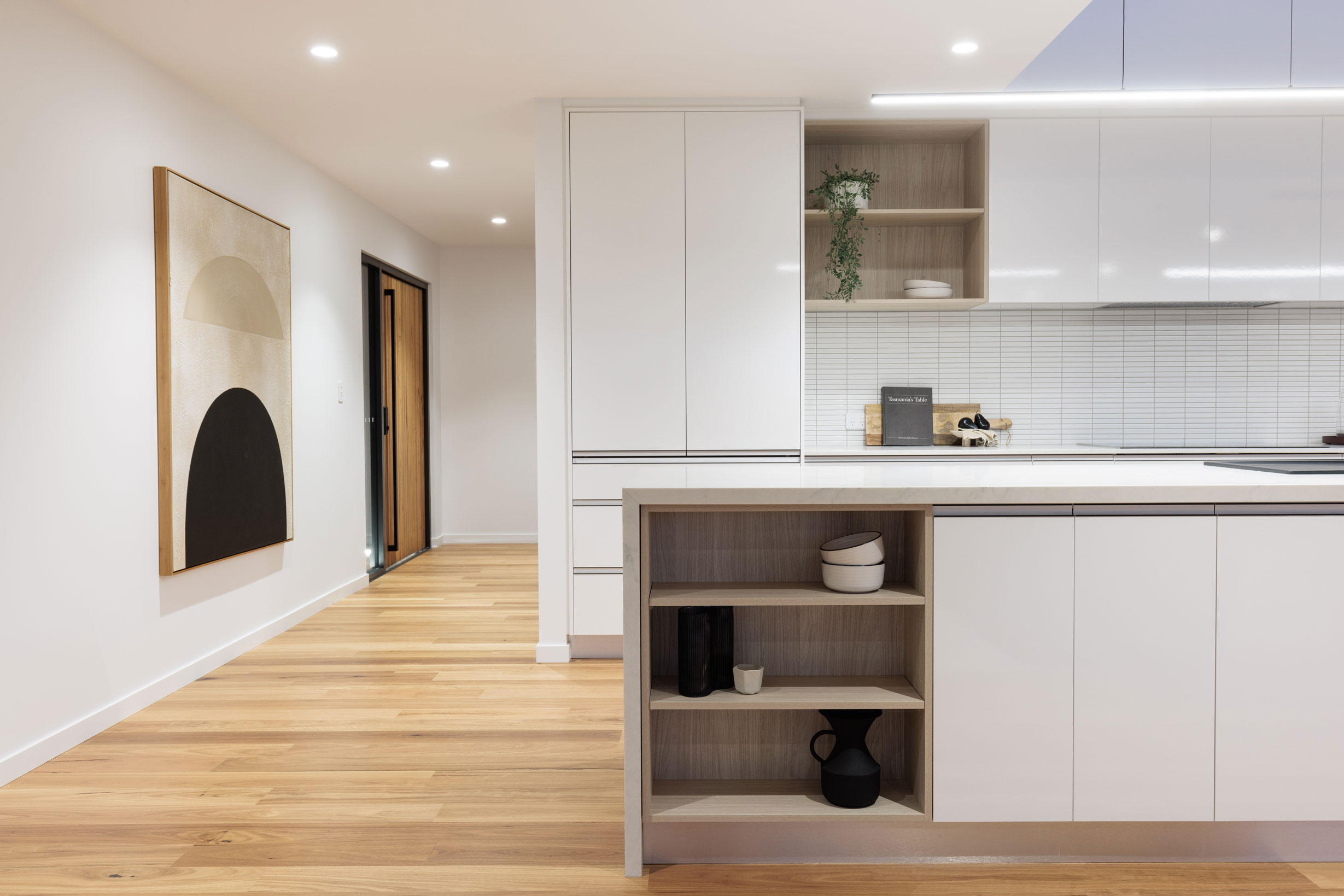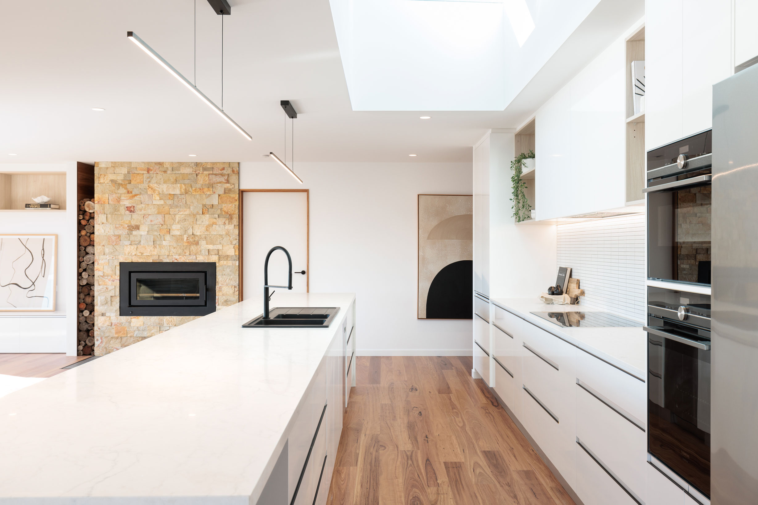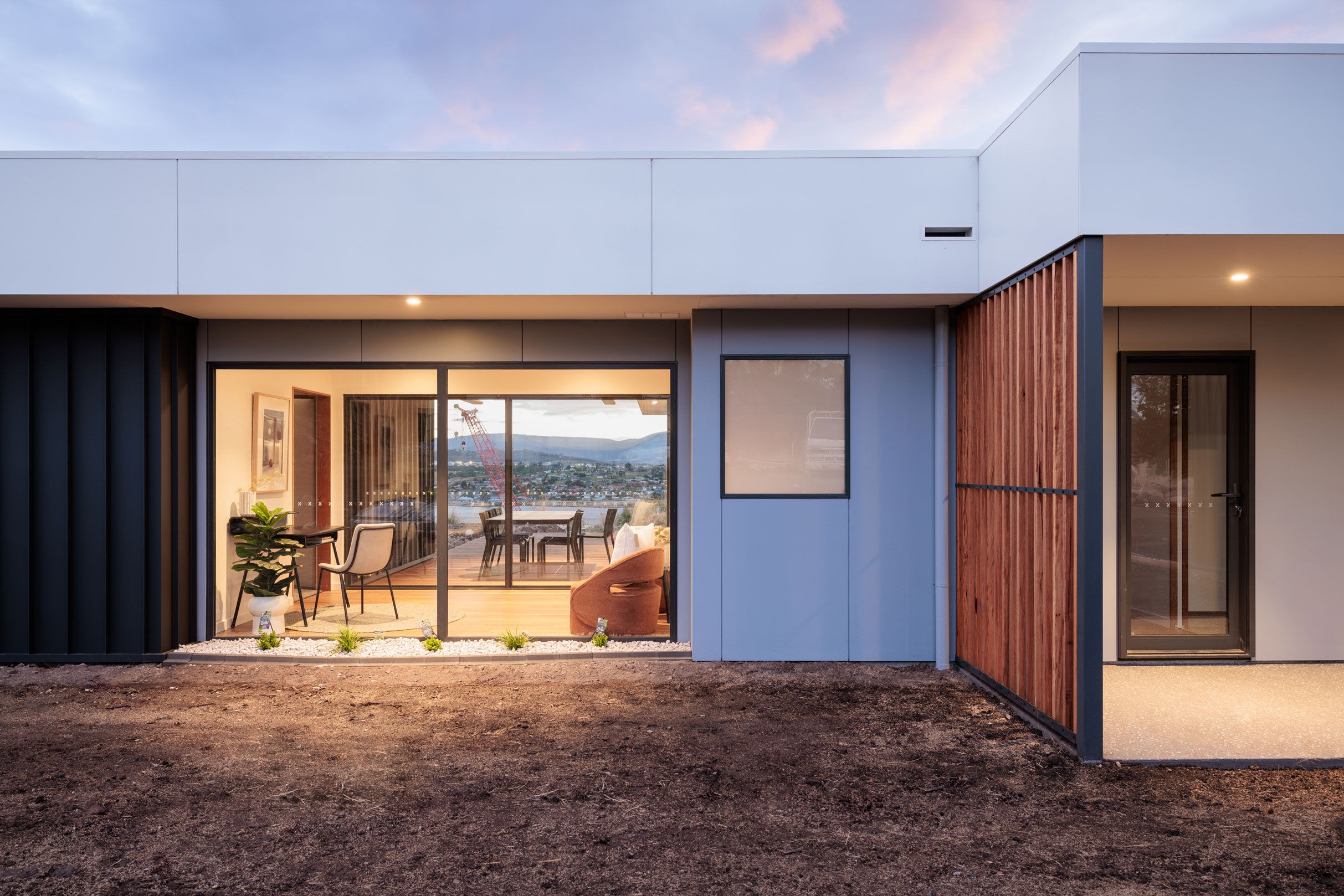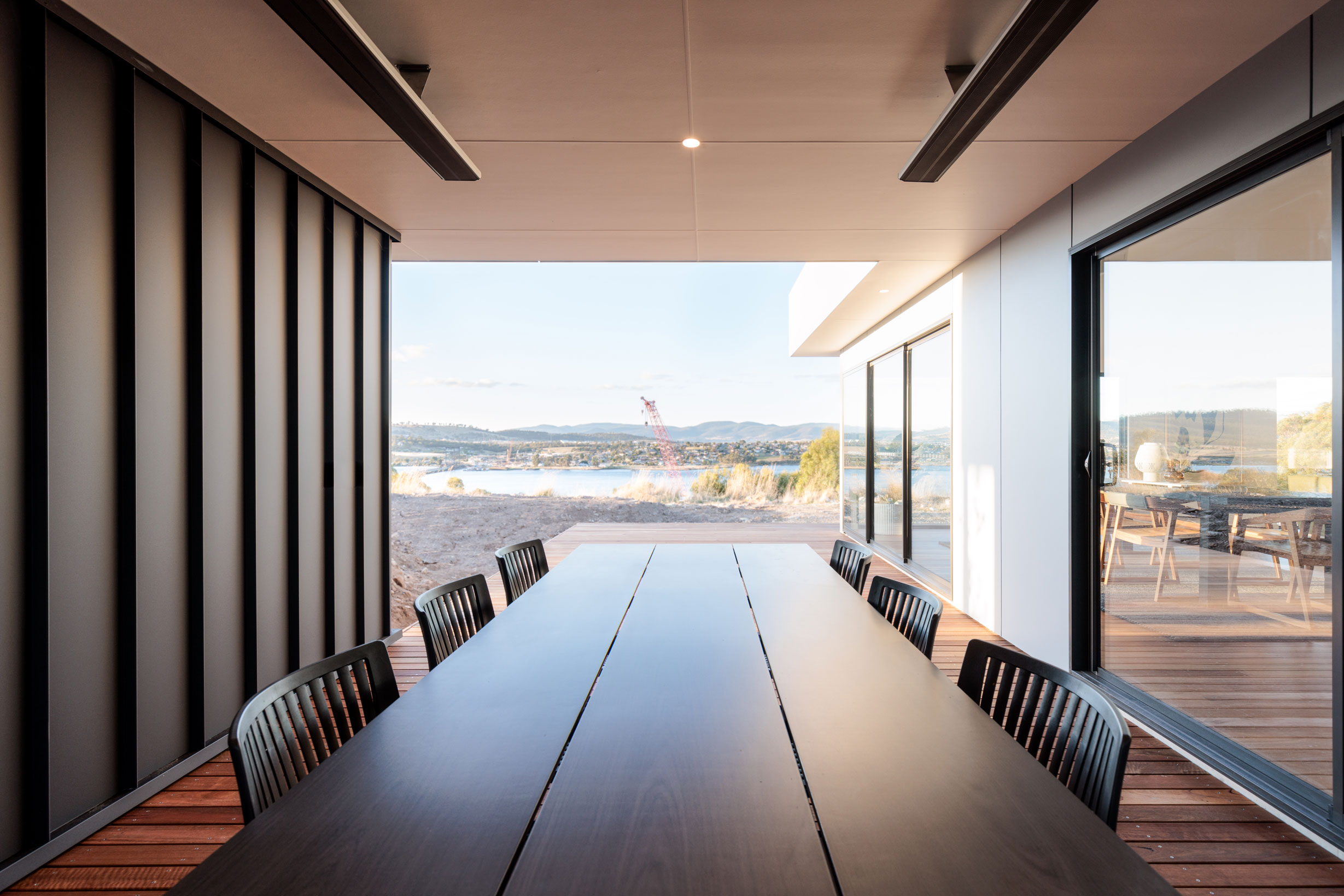 The clients sought a modern, spacious design that would capitalise on a site with commanding Derwent River views and a northerly aspect. A large, light-filled kitchen/ family /dining space would form a central hub, with quality custom finishes inside and out.